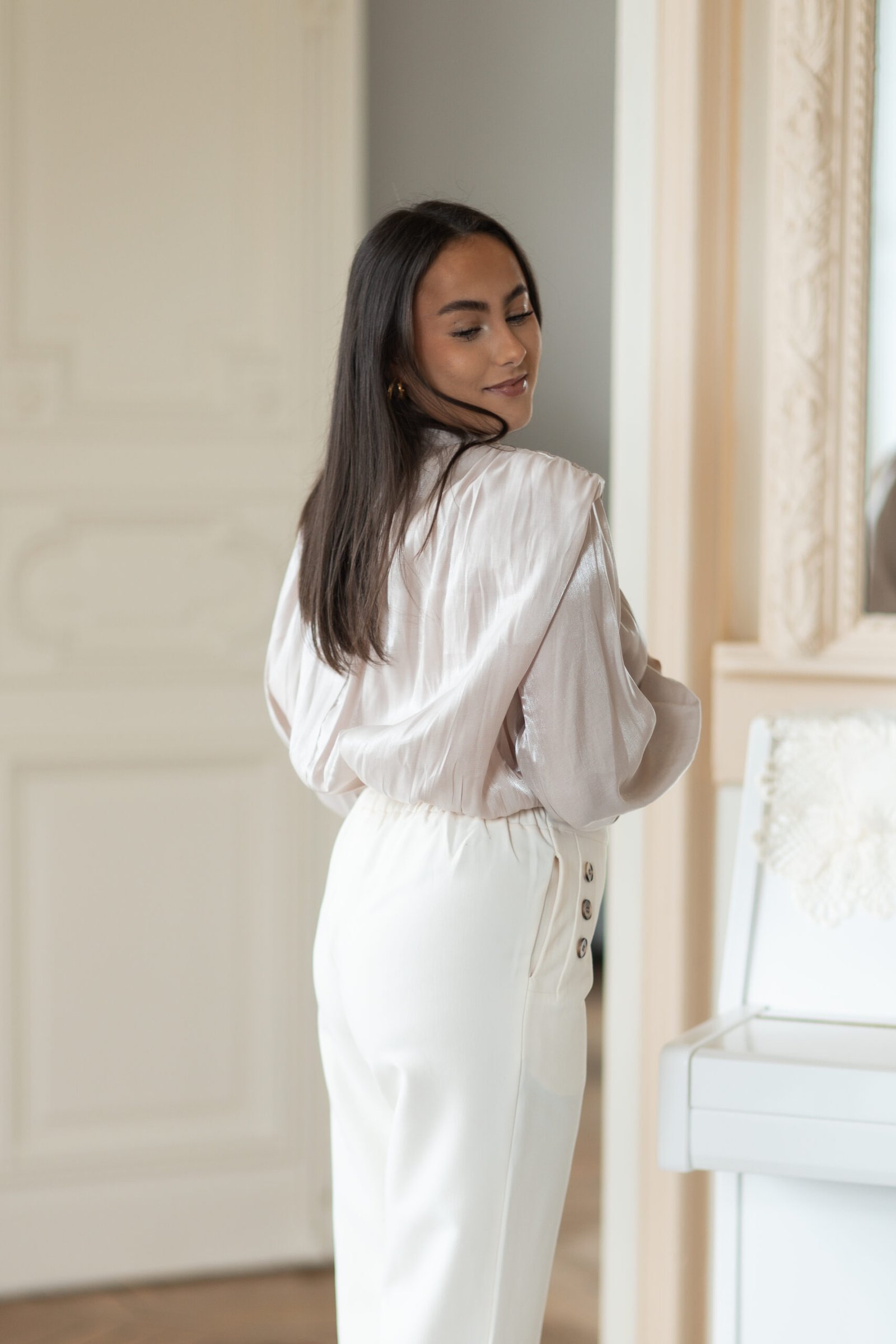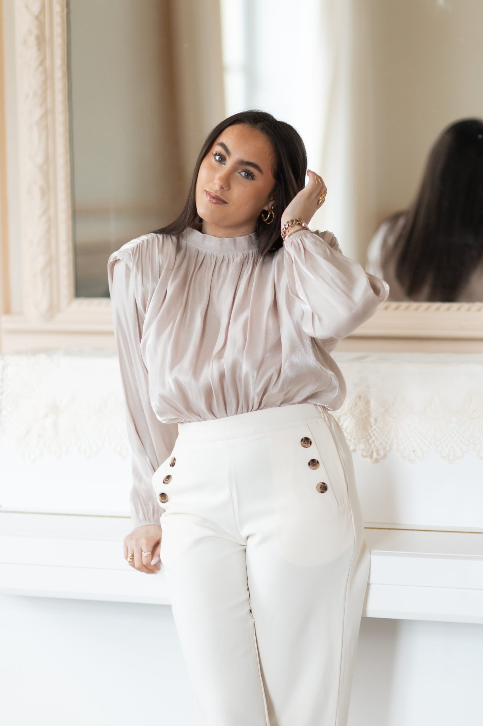 Top sequins argentés manches longues
