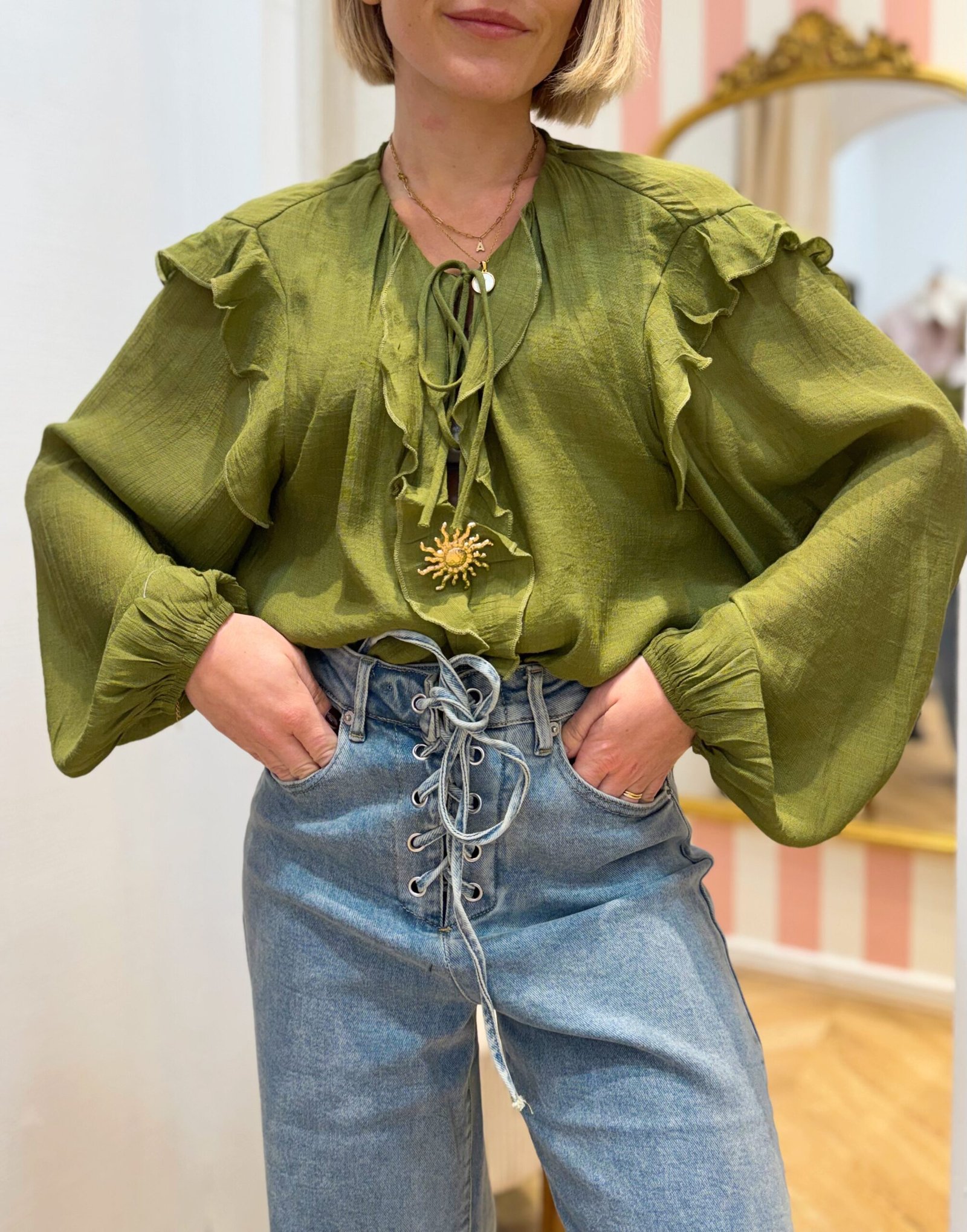 Blouse fluide verte olive