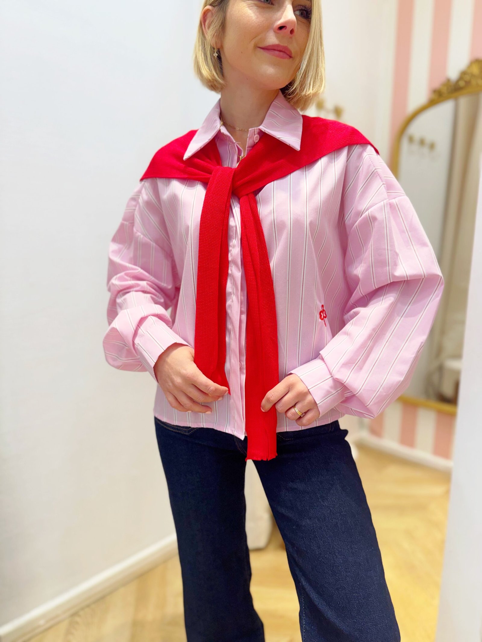 ♡ Chemise rose à rayure blanche et rouge avec une étoffe rouge sur les épaules