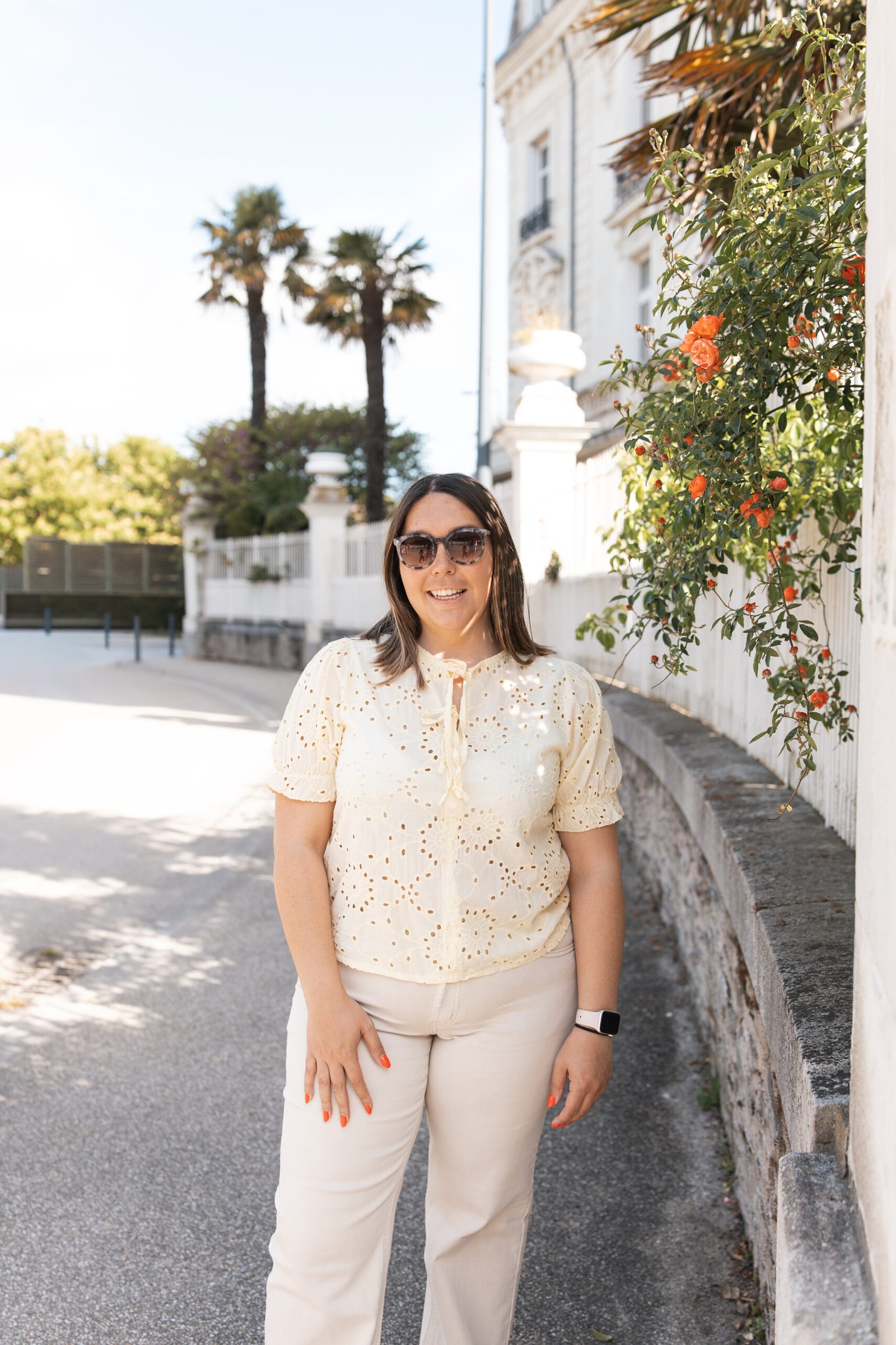 ♡ Blouse jaune ajouré avec petits noeuds devant