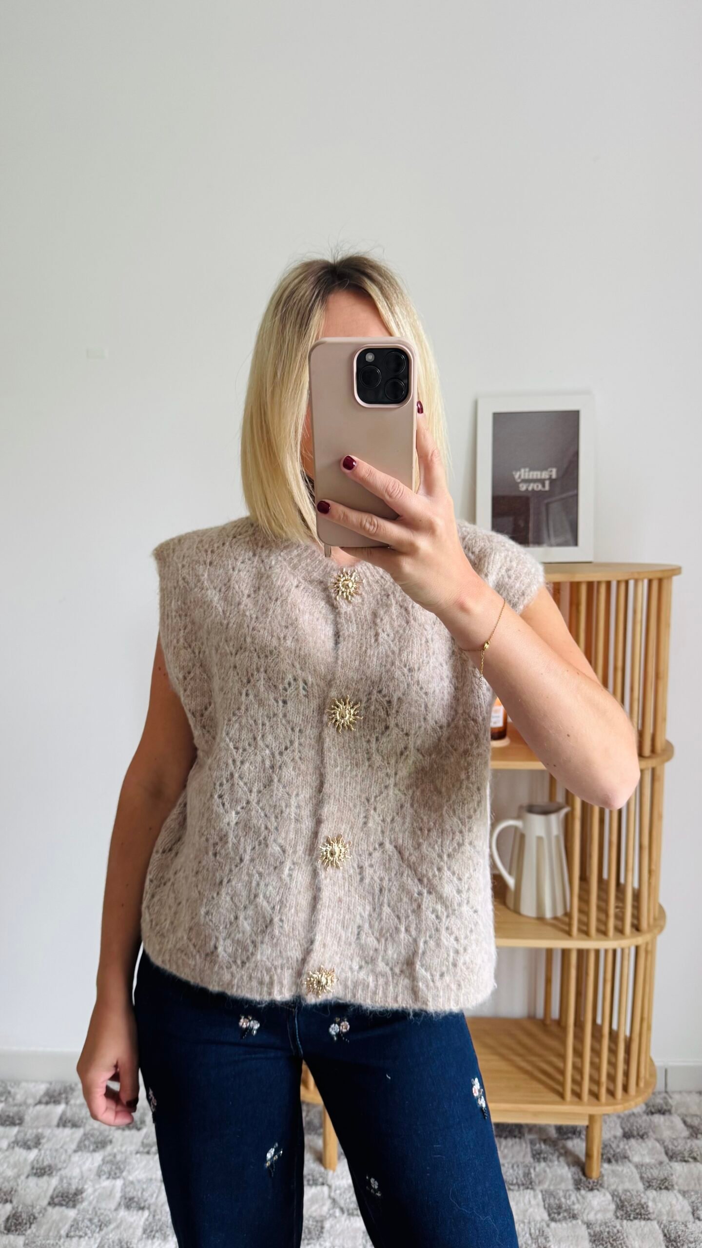 ♡ Pull sans manche beige