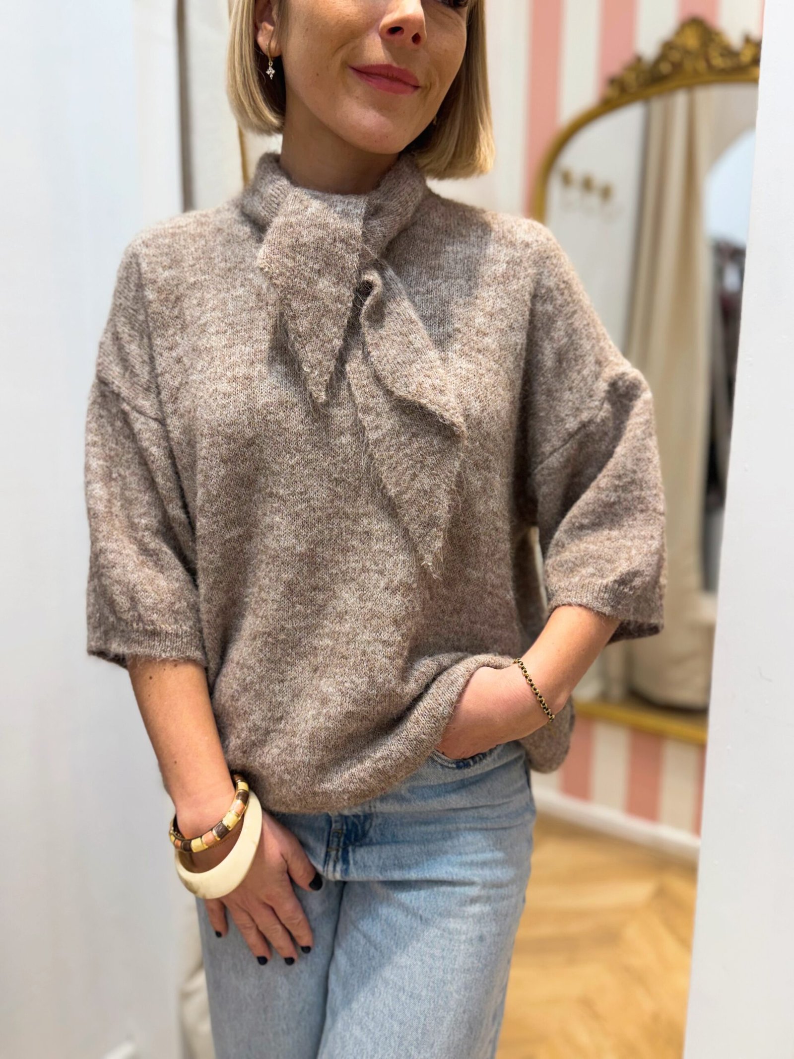 Manteau kaki col marron