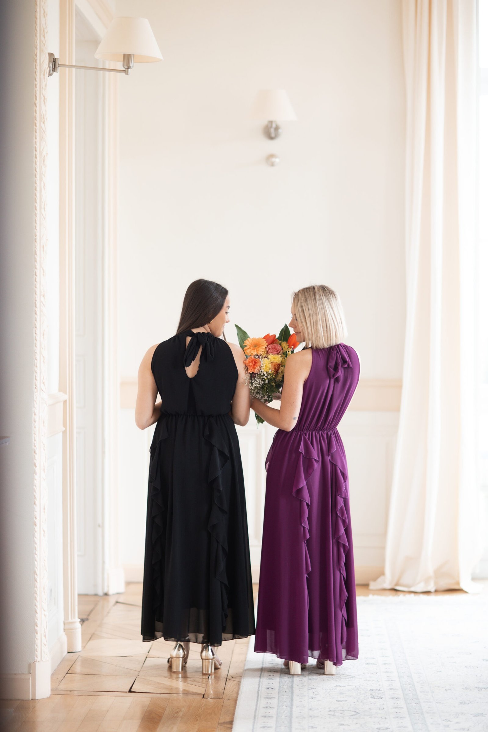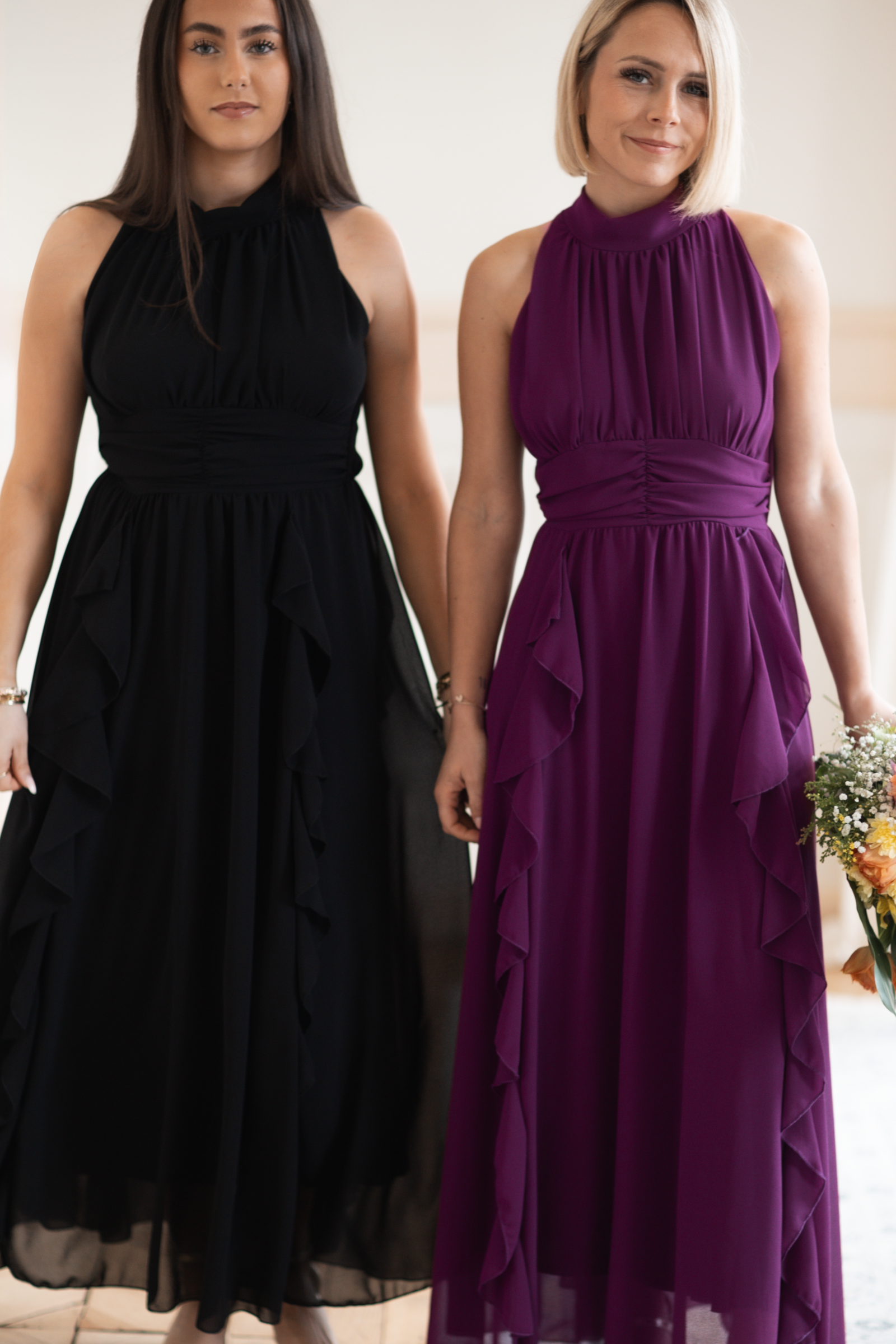 ♡ Robe longue sans manches avec froufrou et un col haut. Il y a un lien dans le haut du dos. Elle est doublée sur toute la robe pour éviter la transparence.