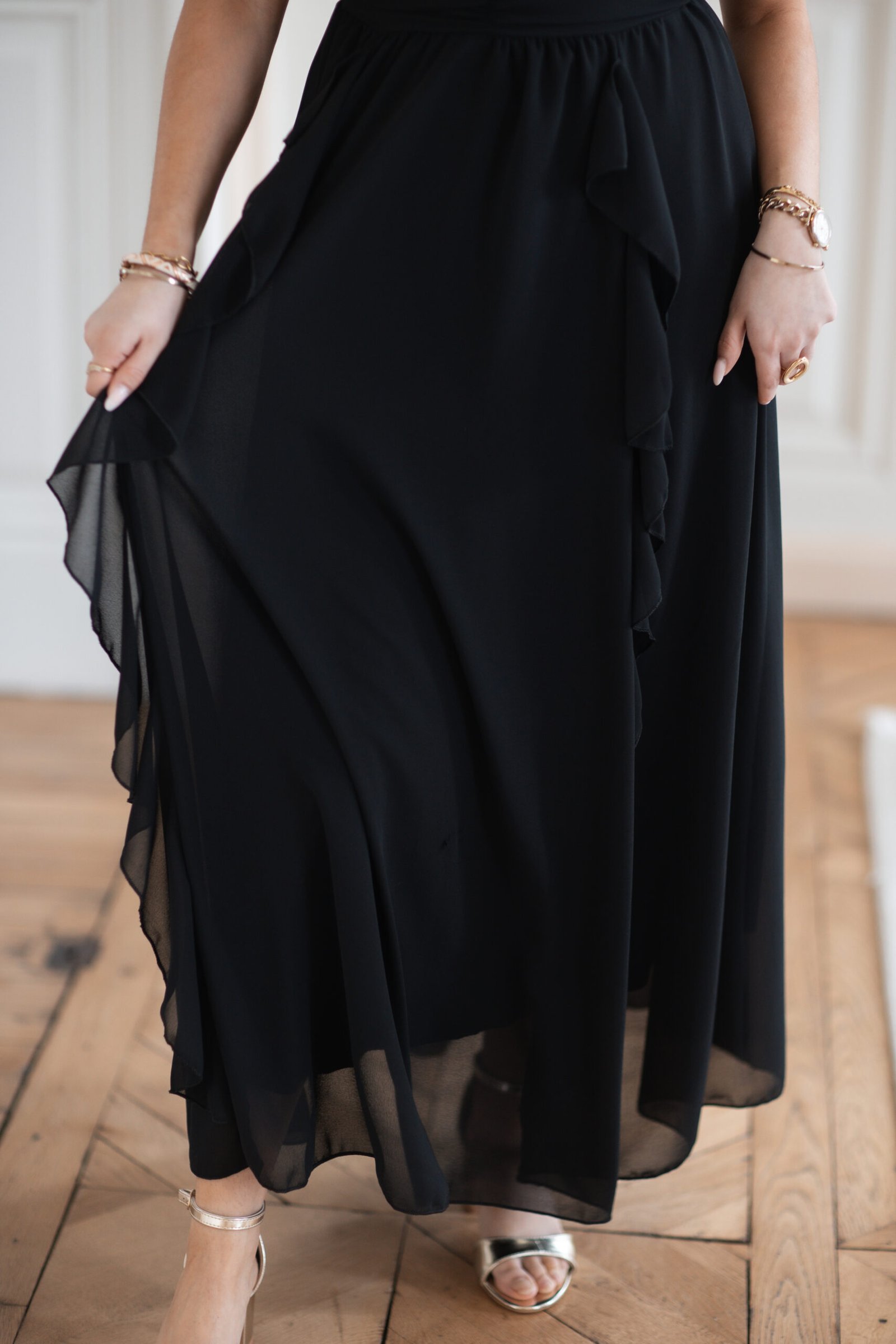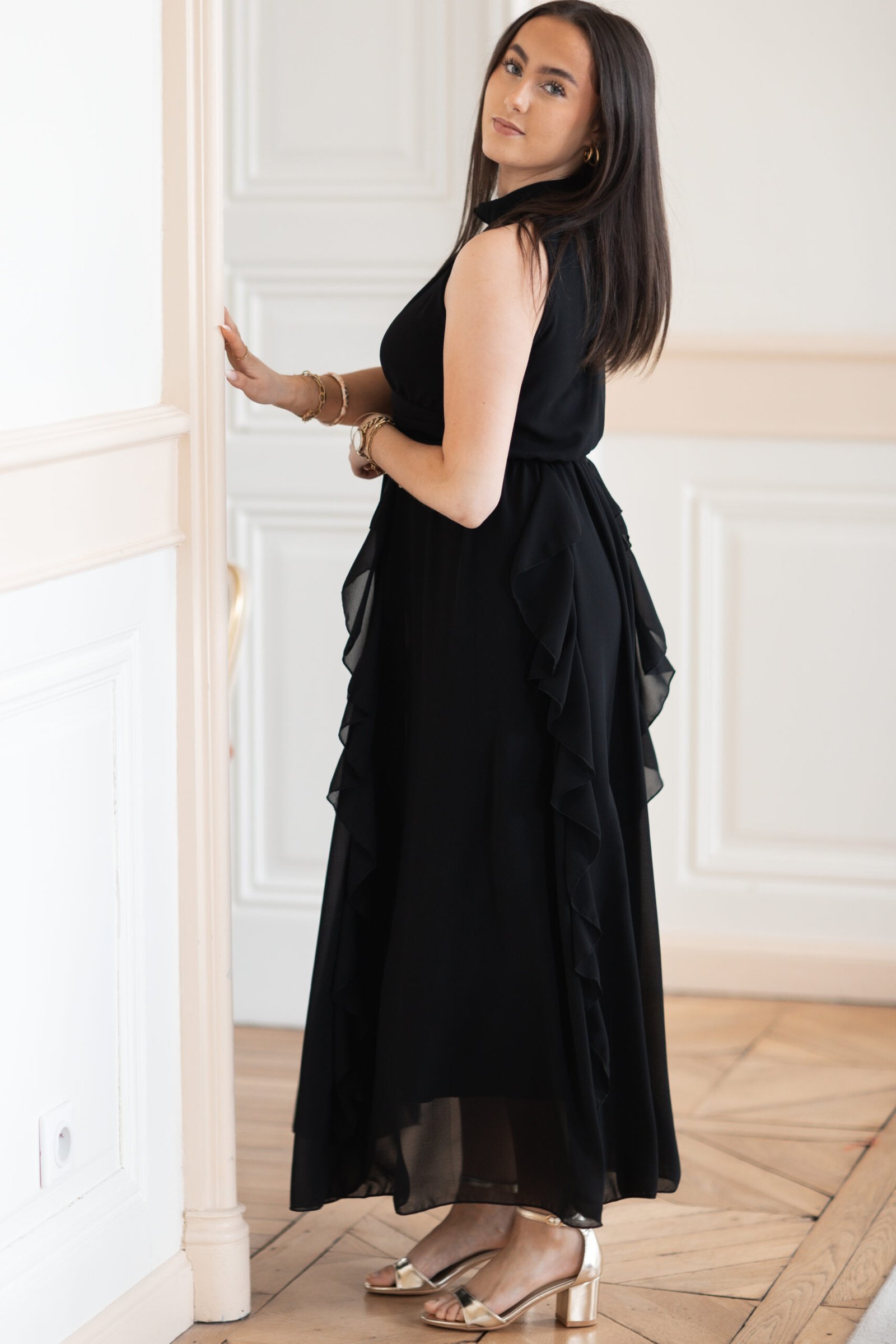 Robe longue col haut avec froufou noir