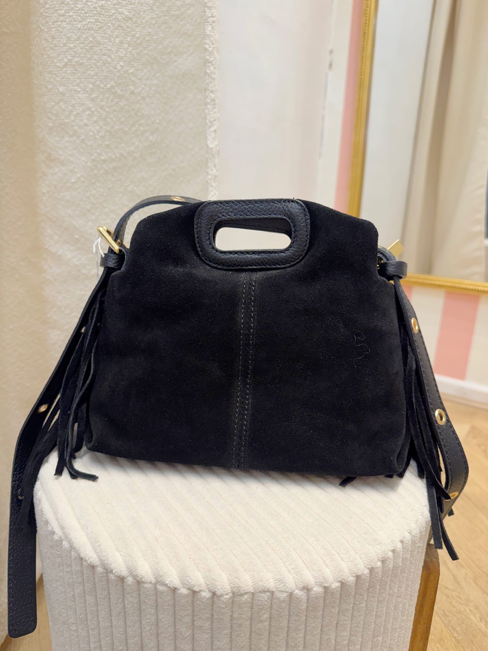 / Sac noir à franges daim